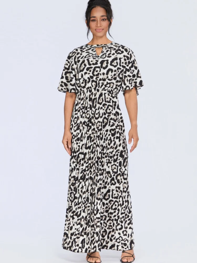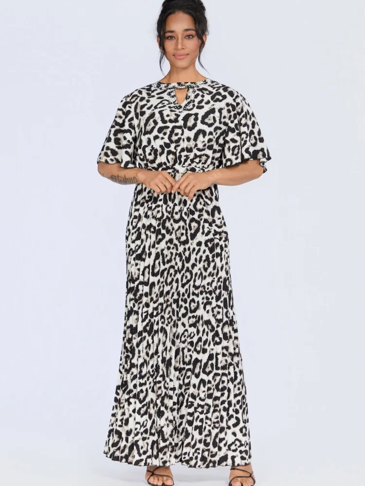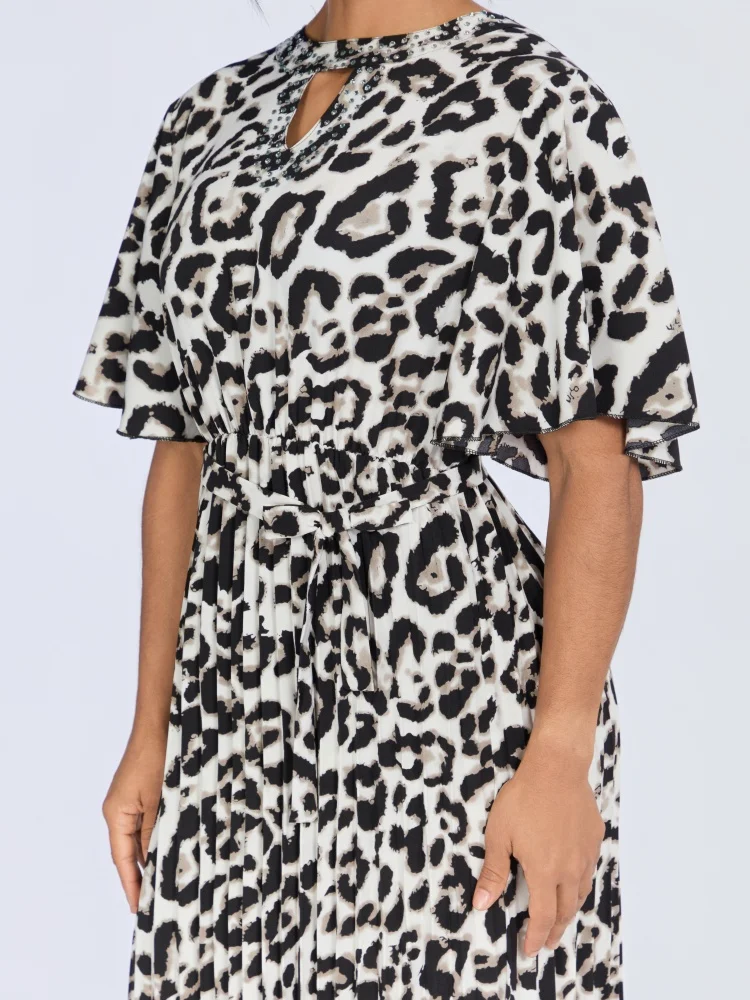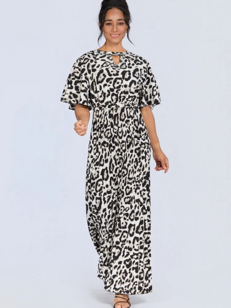 Wholesale New Summer Casual Loose Women's Deep Round Neck Short Sleeve Leopard Print Dress